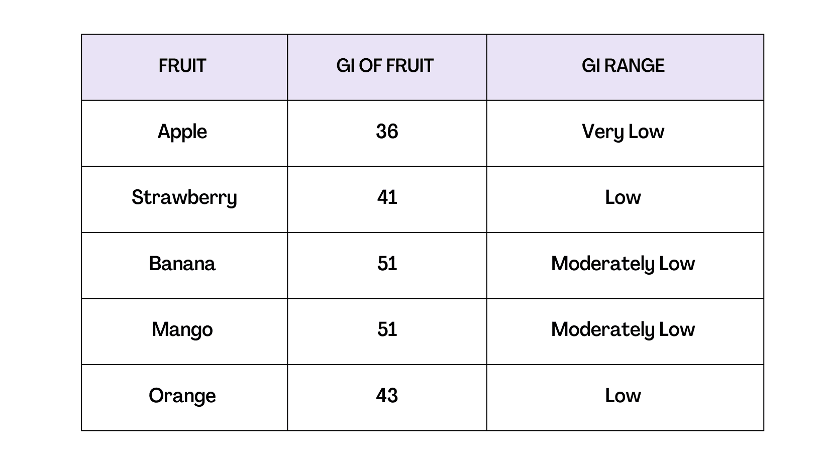 Glycemic Index Chart For Common Fruit