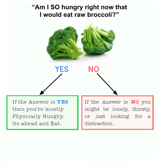 If you answer "No" then you're not actually hungry for food, but looking for something else - Stress relief, a Distraction, a Quick escape, etc)