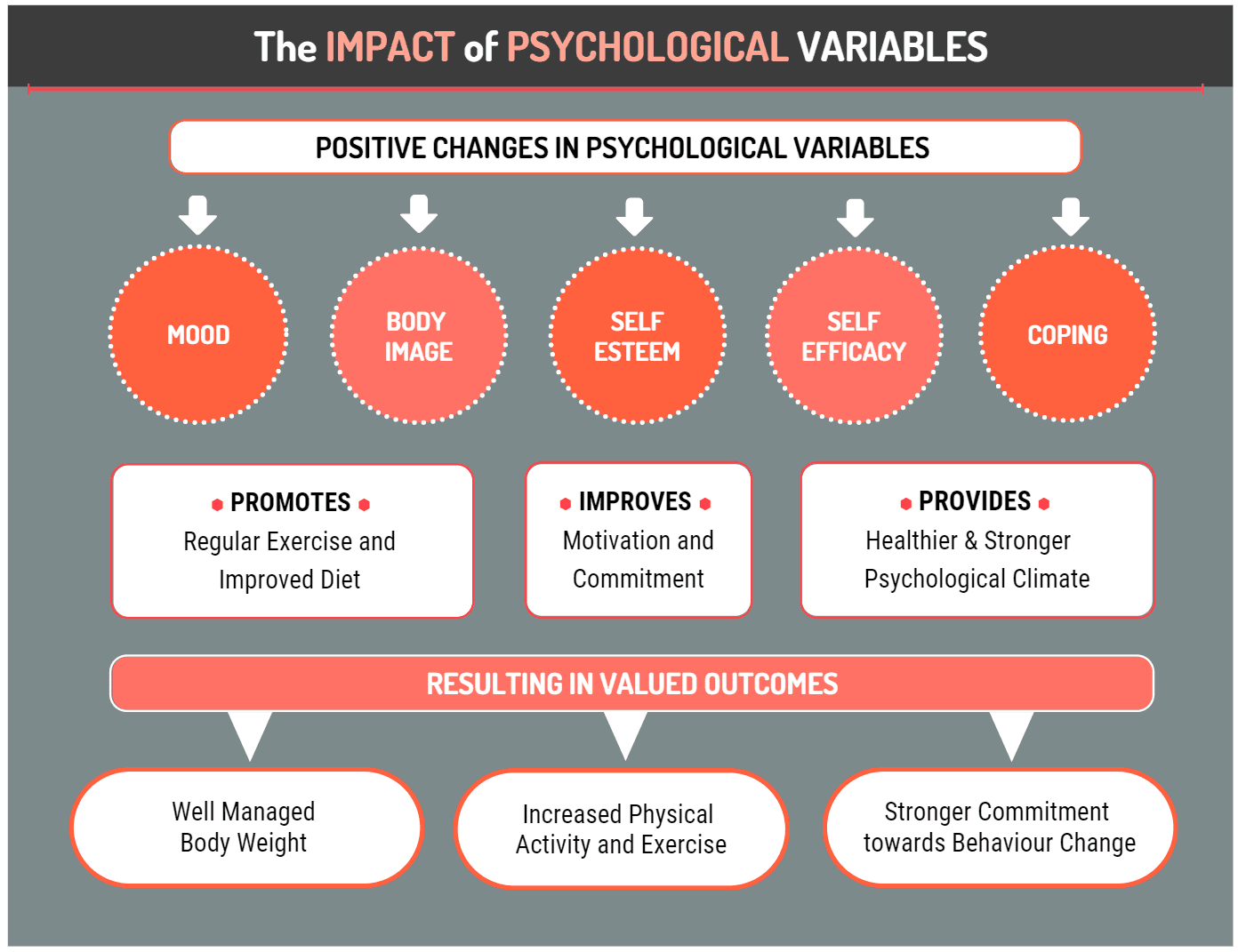 Successful weight management is heavily dependent on healthy eating and exercise behaviors. But when the primary goal is to not only lose weight but sustain it in the long term, we may find that physiological mechanisms as a stand-alone level may not get us the kind of results we want. This is where introducing Psychosocial factors along with established physiological constructs guarantees a successful outcome.
